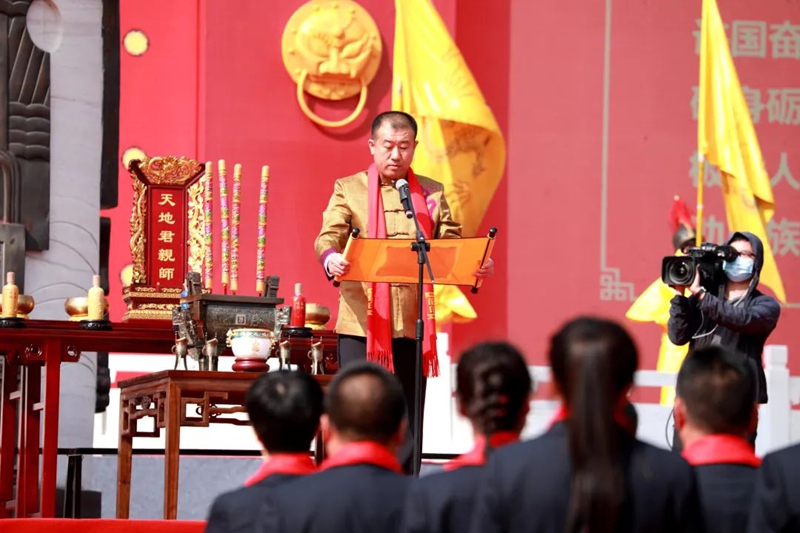 在莊嚴(yán)肅穆的鐘鼓聲中,板城酒業(yè)領(lǐng)導(dǎo)班子在祭祀官的指引下,通過恭請(qǐng)祖駕、誦讀祭文、獻(xiàn)酒五行、宣讀訓(xùn)詞等十多個(gè)步驟,莊嚴(yán)肅穆地完成了敬獻(xiàn)天地先祖的儀式。