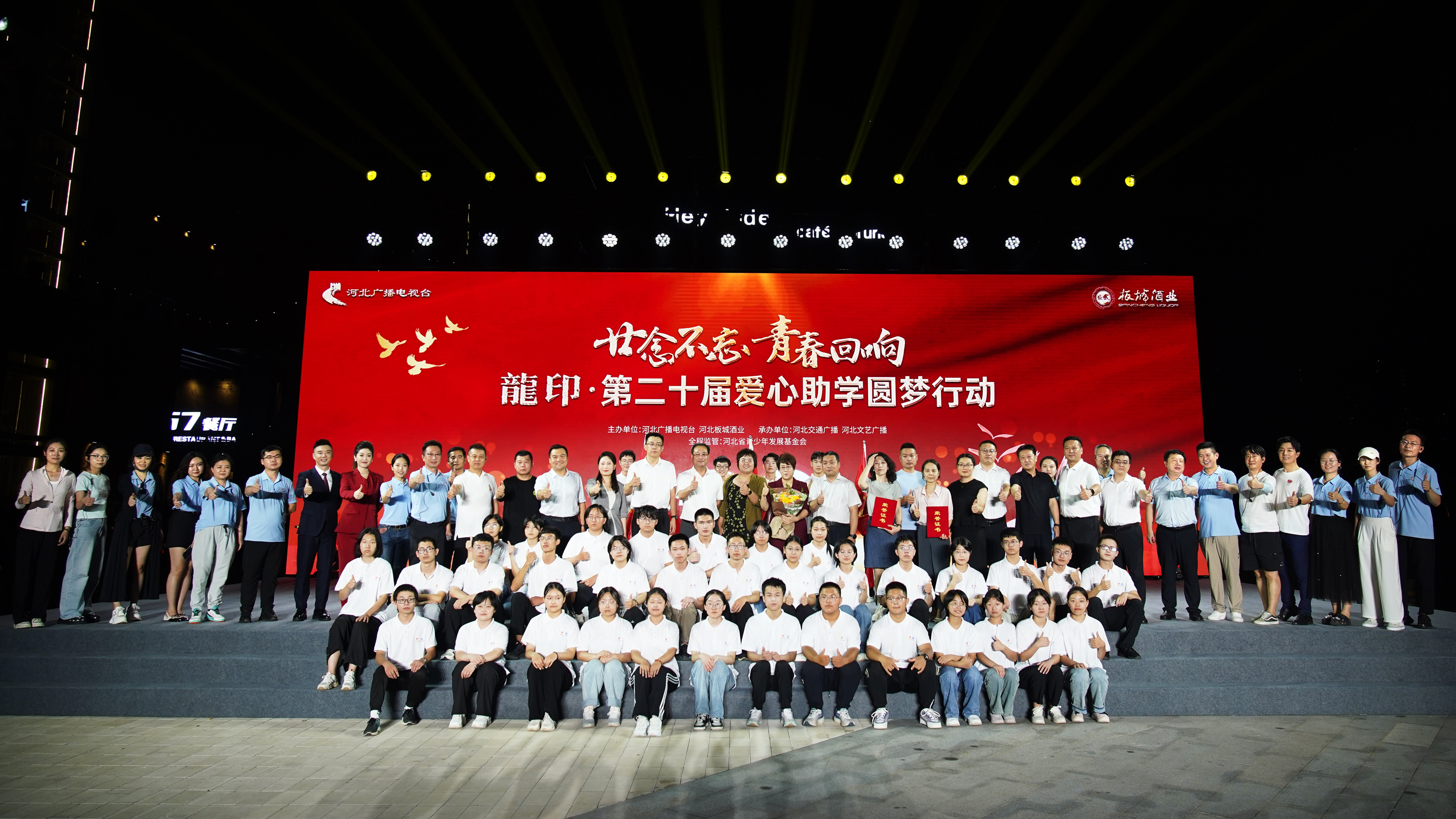 廿念不忘青春回響;8月8日,由板城酒業(yè)與河北廣播電視臺(tái)共同發(fā)起主辦的“廿念不忘青春回響”龍印·愛心助學(xué)圓夢(mèng)行動(dòng)二十周年公益盛典捐贈(zèng)儀式在石家莊工業(yè)遺址公園圓滿舉行。