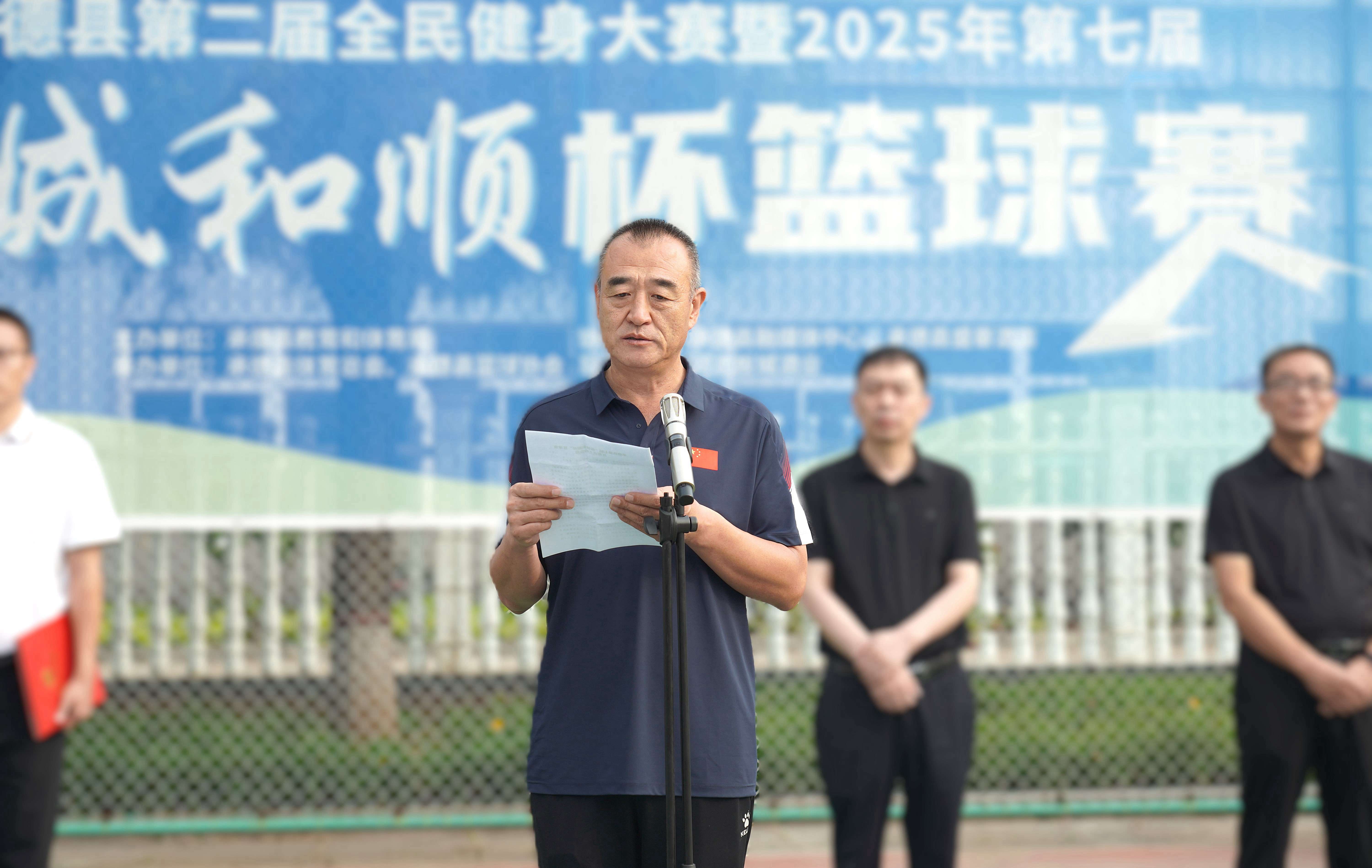 承德縣教育和體育局體育工作指導(dǎo)中心主任朱瑞東發(fā)表致辭,朱主任講到:“縣教體局聯(lián)合板城酒業(yè)持續(xù)舉辦體育賽事活動(dòng),連續(xù)舉辦七屆‘板城和順杯’籃球賽事,為承德縣全民健身提供了重要平臺(tái),縣教體局將持續(xù)開展全民健身活動(dòng),搭建全民健身平臺(tái),開展形式多樣的體育活動(dòng),讓承德縣人民參與多種體育賽事。”