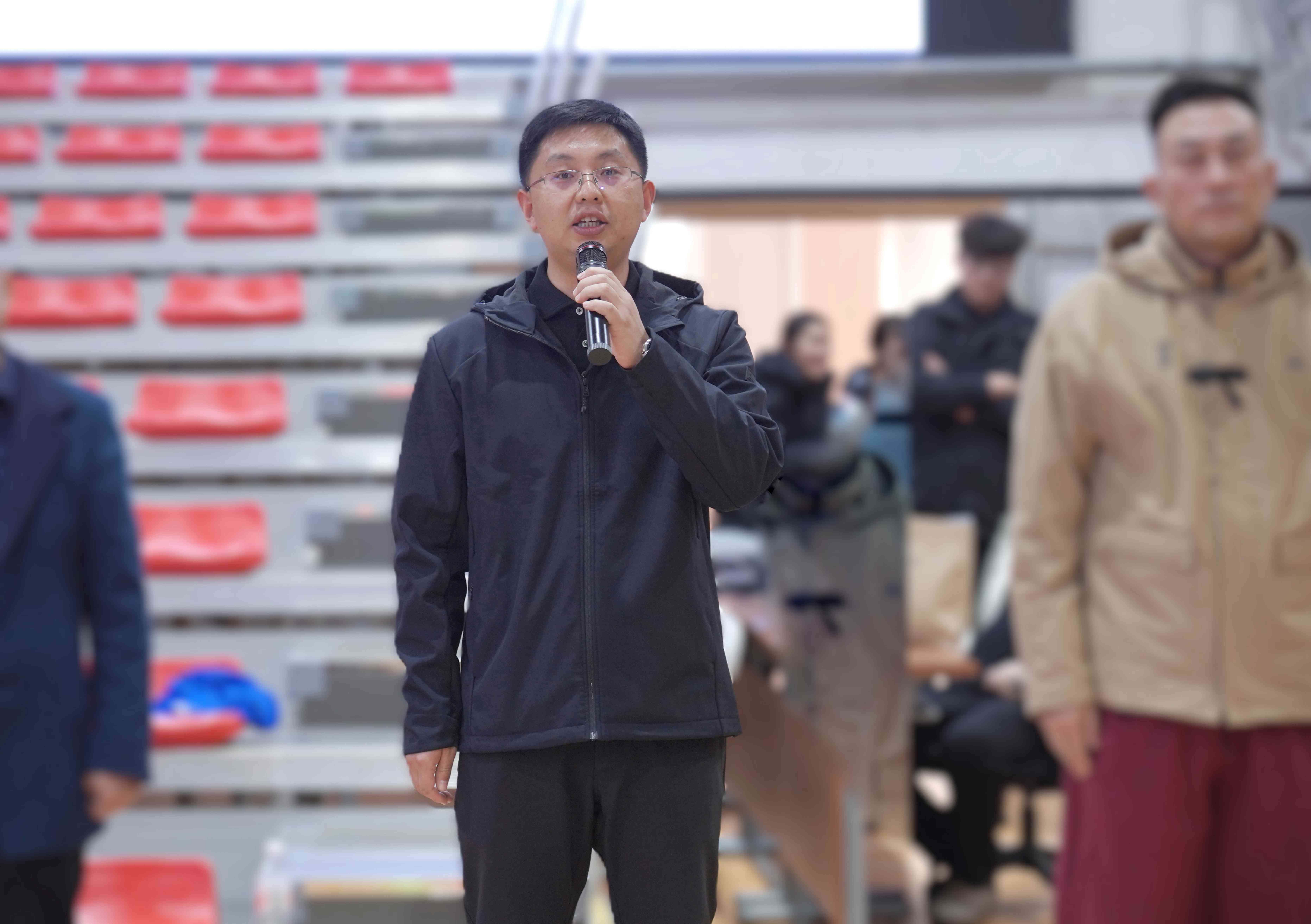 河北板城酒業(yè)銷售市場總監(jiān)王曉波致辭:“承德這片土地孕育的‘和合共生’精神,與板城酒業(yè)秉持的‘和順’文化一脈相承。我們期待本屆賽事不僅能展現競技體育的激情,更能讓同學們在團隊協(xié)作中品味成長之味,讓‘板城和順’的醇厚與青春的汗水交融,共釀今冬最美記憶。”