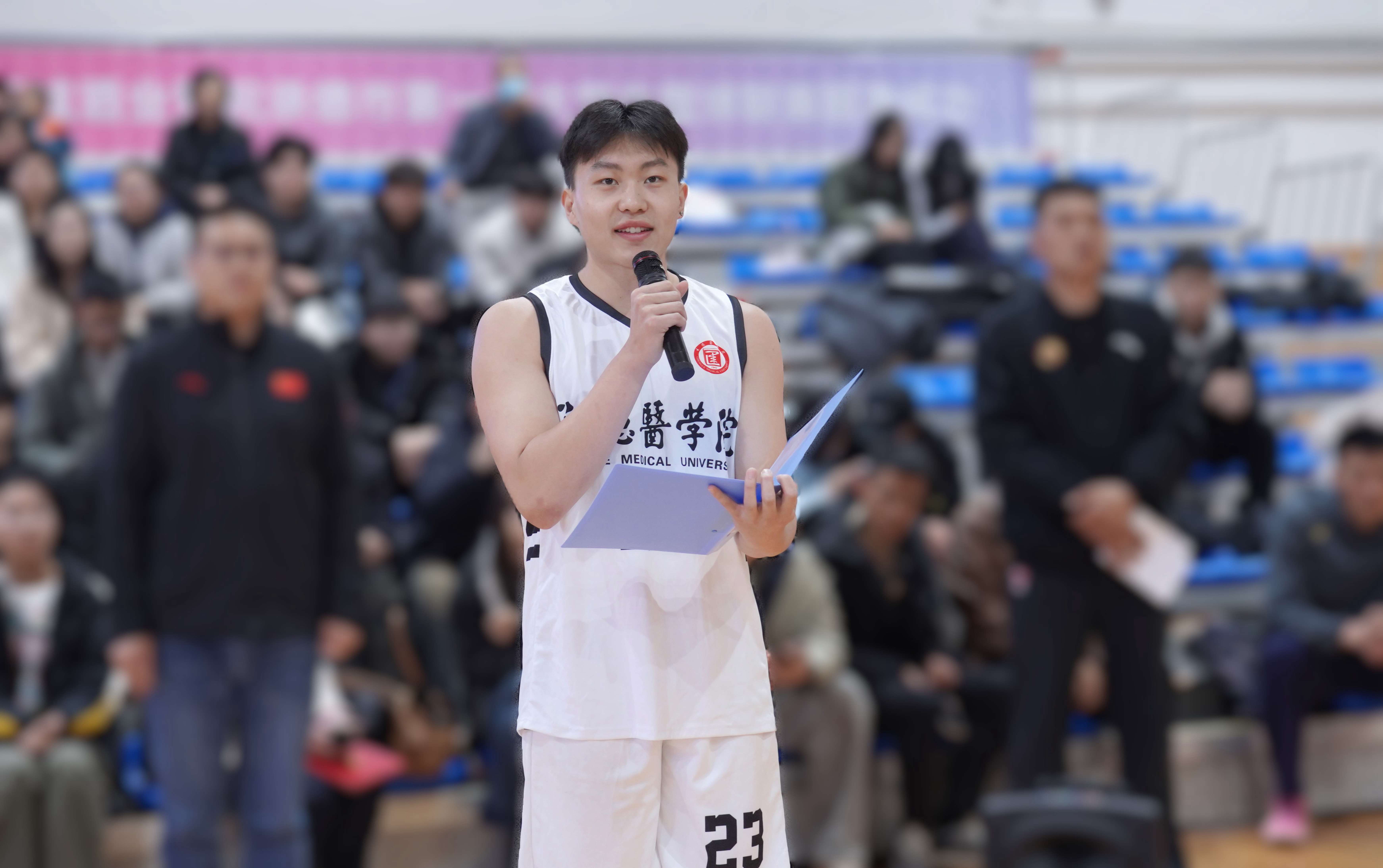 承德醫(yī)學院黨委常委、副校長郭玉成致開幕詞,郭校長在開幕辭中勉勵學子,恪守校訓,將籃球賽場上的拼搏與協(xié)作化為成長養(yǎng)分。他高度肯定了“板城和順杯”所承載的校企協(xié)同育人新模式,這不僅是一次體育賽事,更是校企雙方深化合作、共育棟梁的生動實踐,展現了企業(yè)回饋社會、助力教育發(fā)展的責任擔當。